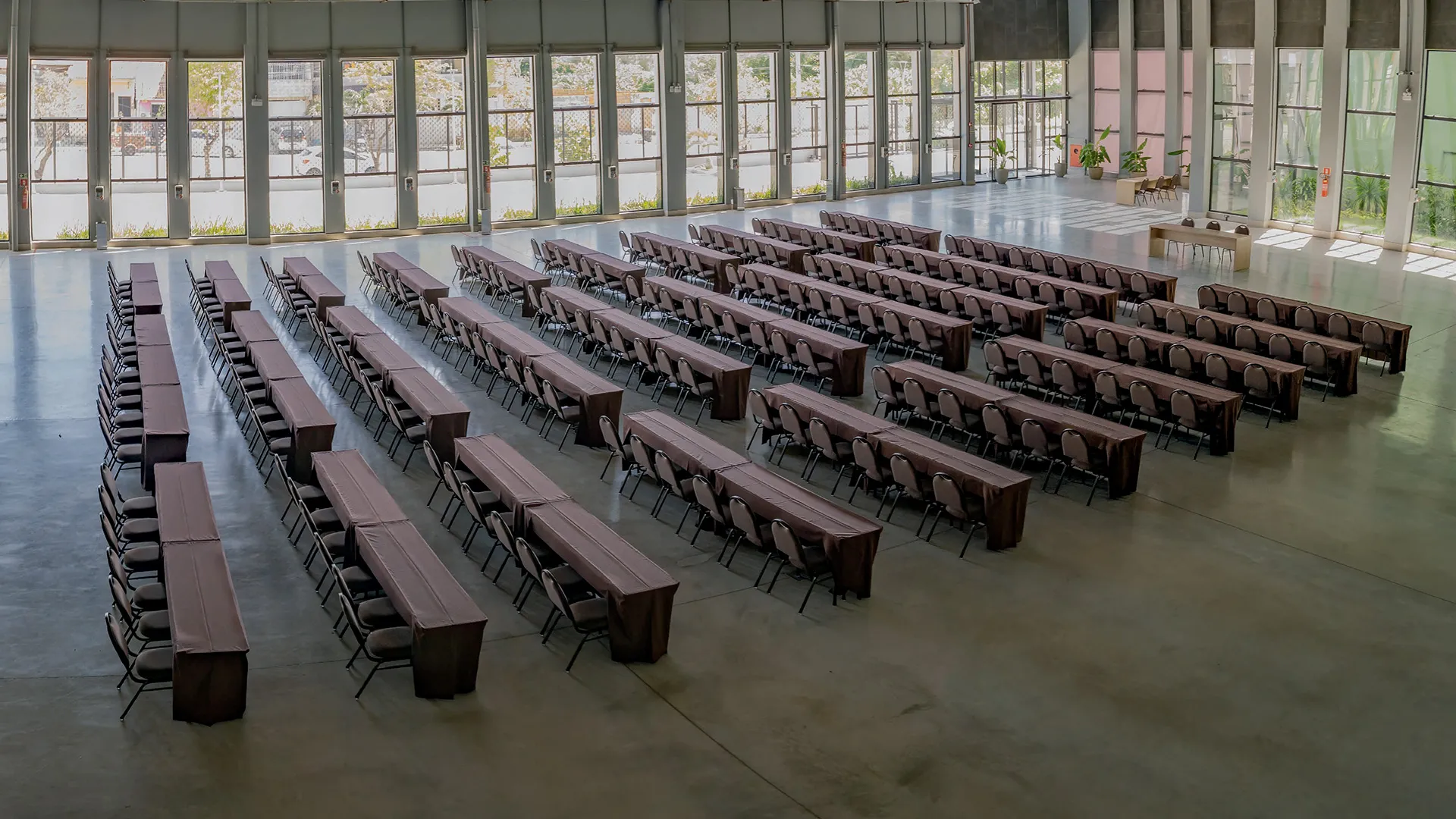 Cortinas elétricas e opção de climatização, ajustando o conforto ao estilo do seu evento.